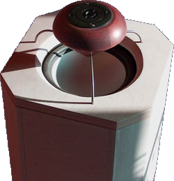 Durch einen Holzkegel in dessen Mitte sich der Hochtöner befindet, wird die Schallenergie gezielt reflektiert.